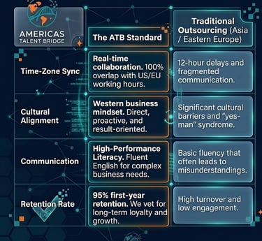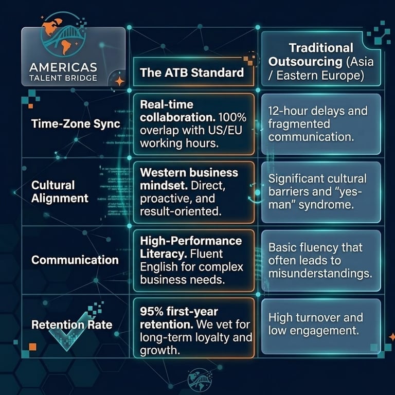 A: We don't just check resumes. Every candidate undergoes a rigorous behavioral interview and a standardized English assessment. We specifically vet for "High-Performance Literacy, ensuring they can navigate complex business environments, communicate with precision, and align with the work ethic of top-tier global teams.